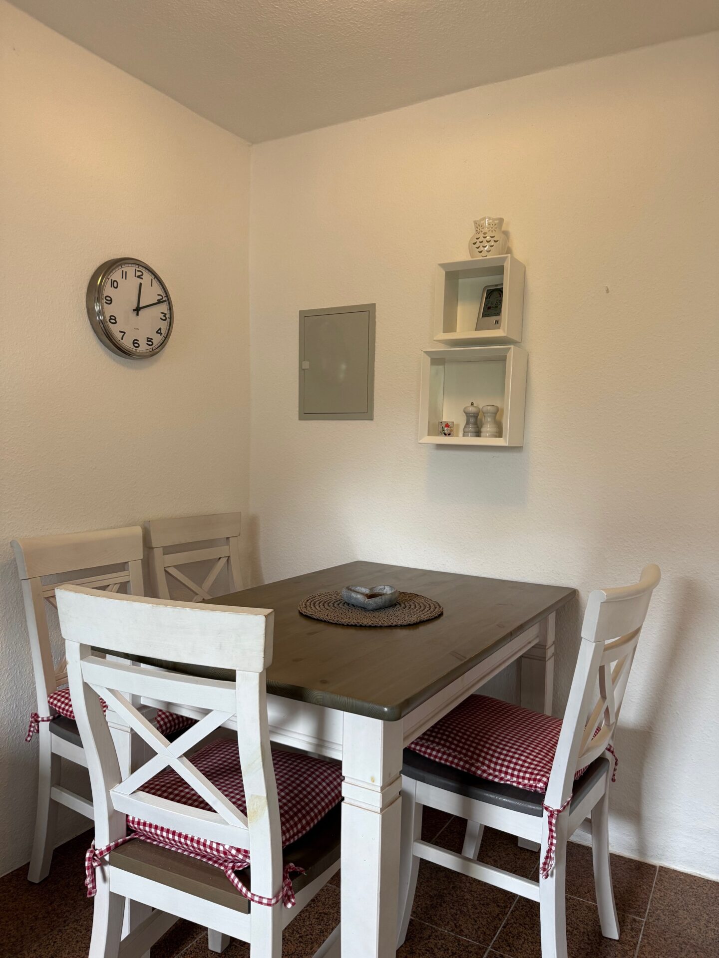 Die vollausgestattete Küche verfügt über einen Essbereich für 4 Personen. Die Einbauküche ist mit allem, was zum täglichen Kochen benötigt wird, ausgestattet. Natürlich finden Sie auch hier genug Platz zum verstauen Ihrer Vorräte.